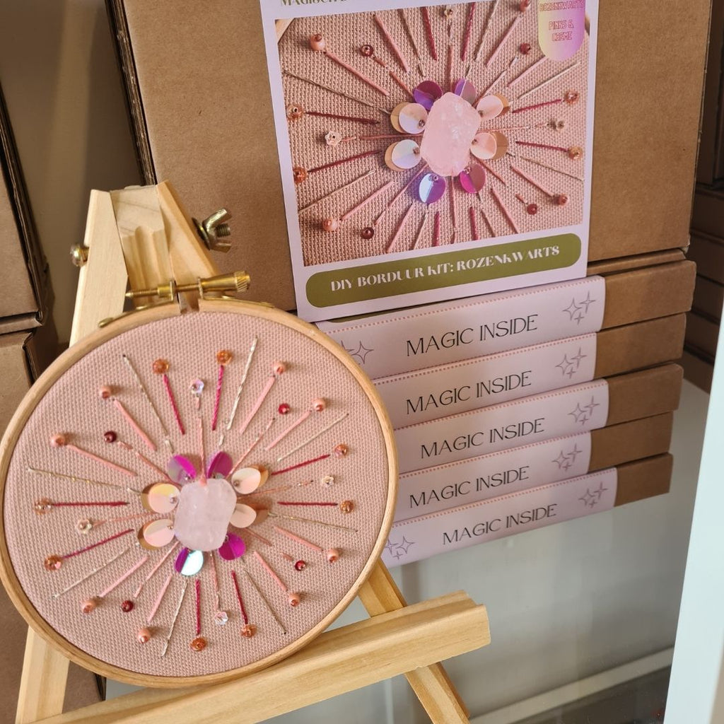 Tijdens deze ochtend leer je te borduren met sprankelende kralen, pailletten en edelstenen. Kies jouw favoriete kit en maak je eigen magische werk.